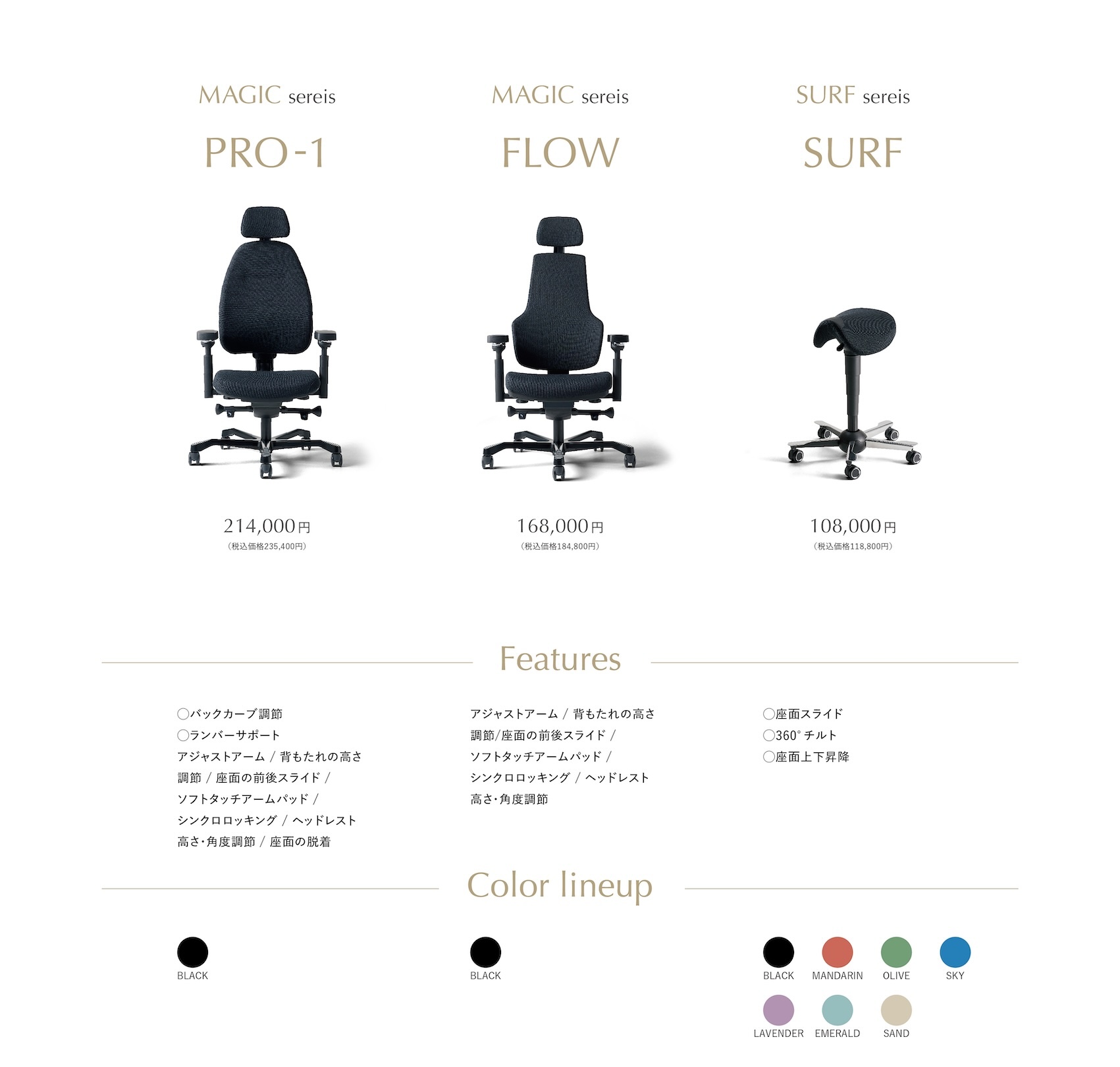 姿勢は仕事の質を変える― その信念のもと、 精緻に設計された機能が、 様々な体格と働き方に応え、 正しい姿勢へと導きます。