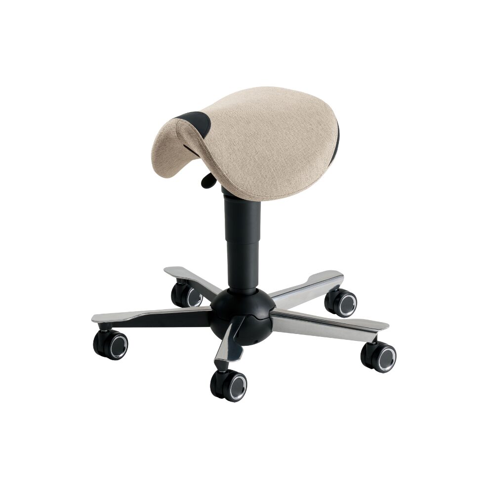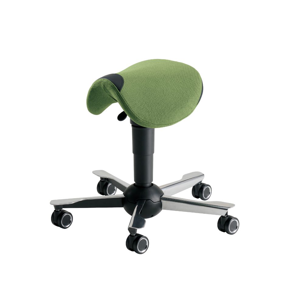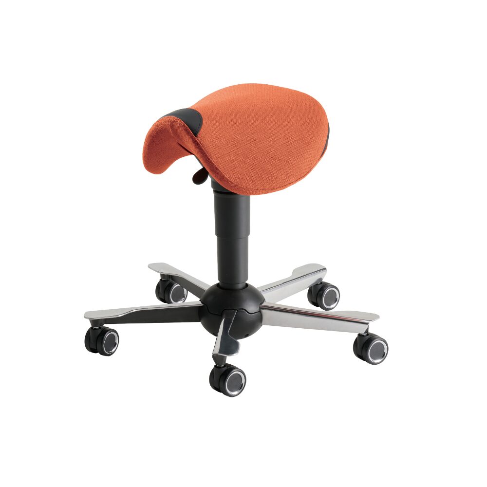 このチェアは、背もたれに頼らず、自らの筋肉で姿勢をつくる―“座る”ことを、静的な行為から、能動的な身体活動へと変える一脚。乗馬のようにしっかりと支えるサドルシートが骨盤を正しく導き、軽やかにバウンドする座面と360°全方向にチルトし、思考にも、コミュニケーションにもリズムを与えます。